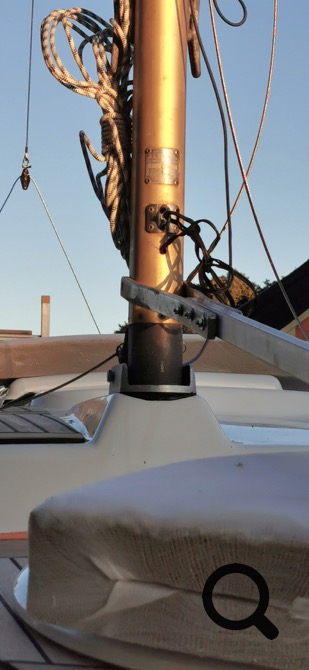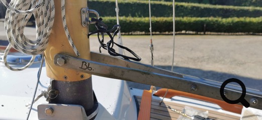 Die von mir gebaute Konstruktion wird an meinem Boot mit jeweils zwei M8 Schrauben an den Backbord- und Steuerbordpüttigen der Ober- und hinteren Unterwanten festgeschraubt. Am Pivotpoint habe ich jeweils einen kleinen Wantenspanner für die Hilfswanten-Trimmung angebracht.