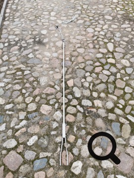 Die Gesamtlänge des Jüt-Hebel beträgt bei mir 243 cm, inkl. Gabel, Schaft und Rollreff- bzw. Blockaufnahme.