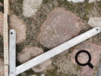 Die Jüt-Gabel besteht komplett aus V2A Edelstahl, da er nach dem Stellen des Mastes nicht am Mast angeschlagen bleibt. Die Schraube im Mast hat ein M10 Gewinde, Das Loch im Mast ist 12mm groß.
