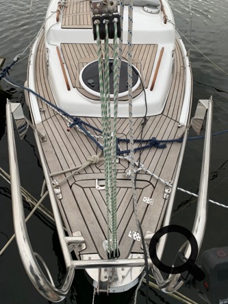 Auch das anbringen des Jüt-Blocks und das lösen der Furlex-Anlage (Vorstag) ist schnell gemacht, wobei dies zu zweit besser und sicherer von der Hand geht.