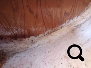 Left: Also in the storage space has deposited on the bare wood mold. It is removed and the surfaces are treated intensively with hydrogen peroxide (H2O2), then the wood is sealed.