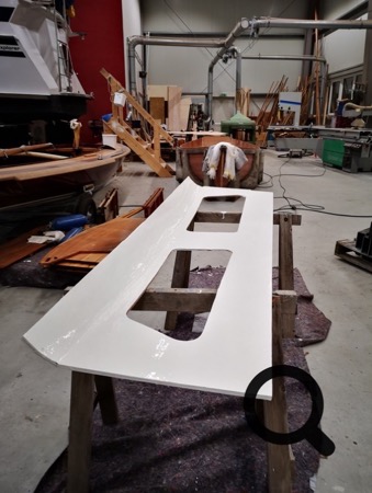 The upper and lower part of the side cladding are now connected after 48 hours of curing and I was able to remove the cladding again to sand, fill, refinish and prime.