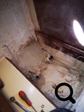 Today I have removed the sea toilet, because this place just looks pretty bad, as you can easily see in the pictures. Since I could not rule out wether water had been deposited, I flexed away the console. What should I tell you, … under the console "JABBA THE HUTT" had been sleeping ... but at least water did not accumulated there. This toilet sneeze will be reworked with fiberglass and a new console. The sea toilet will be converted into a hybrid toilet and will be used on the one hand as a sea toilet and on the other as a composting toilet, but more if the renovation is completed.