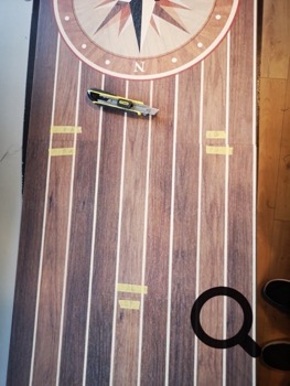 Here you can see the cardboard template for a new floor plate in the salon. A nice laminate is then placed on the board that is still to be made.