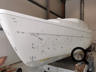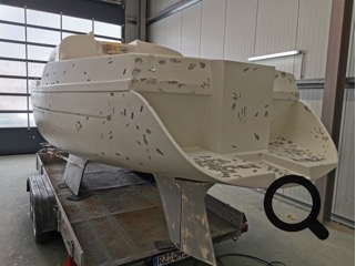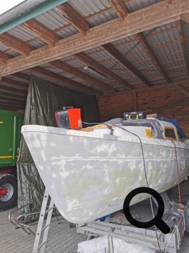 Ich habe am 8.2.2021 den Lackier-Termin und arbeite nun so oft ich kann an an Rumpf und Deck um die Oberfläche ordentlich vorzubereiten.