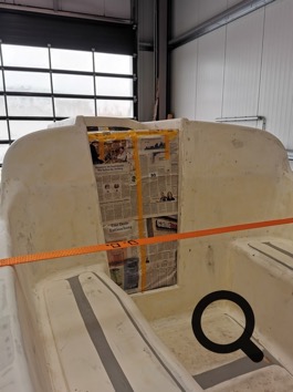 Die Rillen auf den Sitzflachen und dem Cockpit-Fussboden werden geschlossen, weil dort Teak drauf soll.
