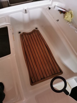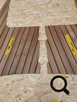 Der Teak-Boden für das Cockpit ist fertig, nun kommen die Sitzflächen im Cockpit-Bereich dran.