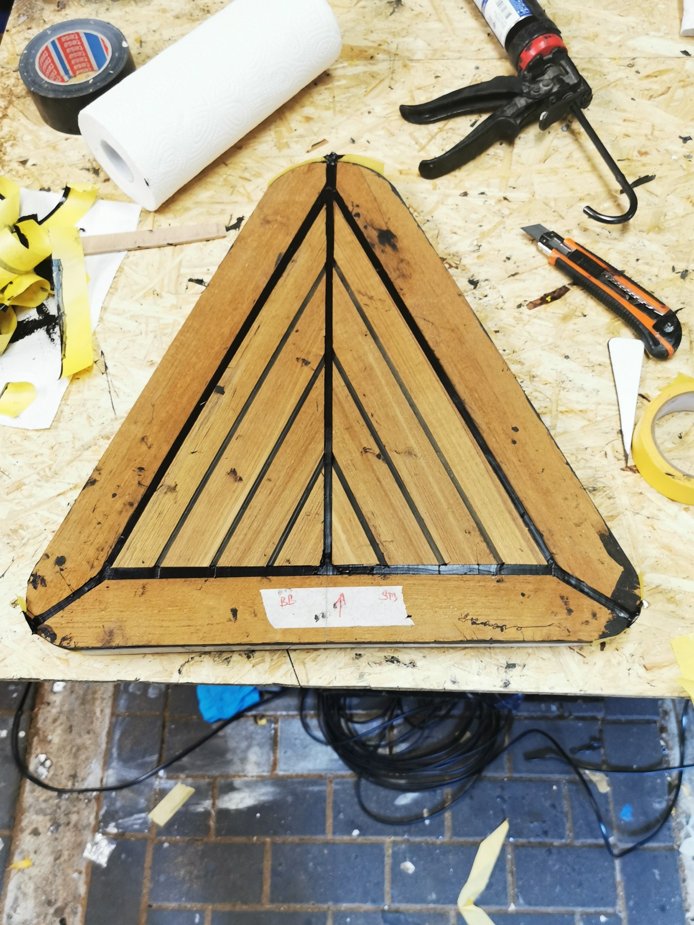 Beim Verkleben muss unbedingt darauf geachtet werden, dass auf schrägen Flächen das Teak wegrutschen kann wenn man Gewichte zum Beschweren drauf legt, daher muss das Holz am besten mit Tape gegen verrutschen gesichert werden.