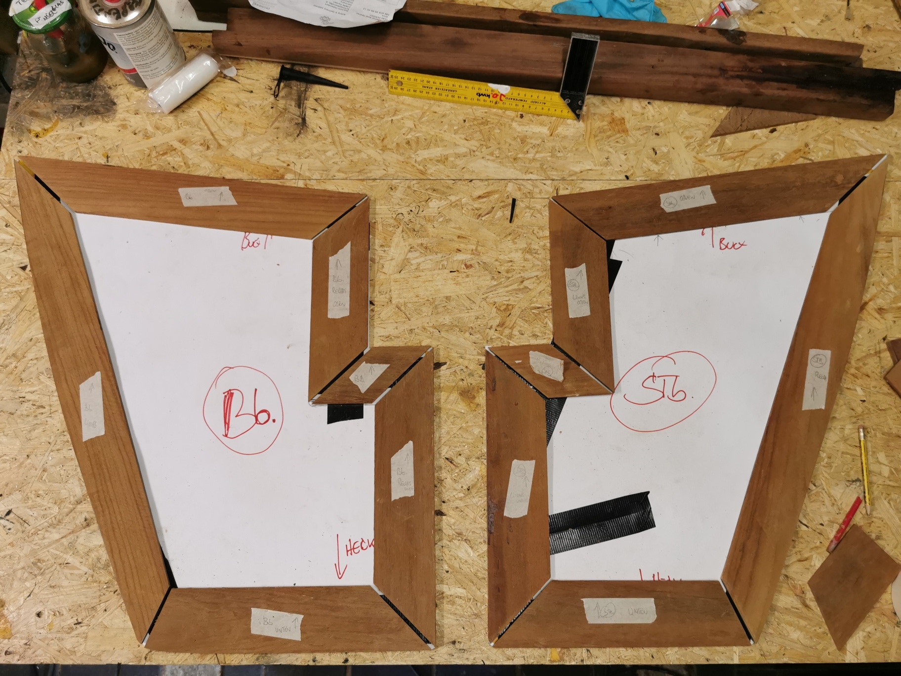 Symetrie ist vor allem im Bugbereich ein Thema. Da man schnell merkt, dass ein Boot nicht wirklich ganz symetrisch gefertigt werden kann, manchmal eine kleine Herausforderung :-)
