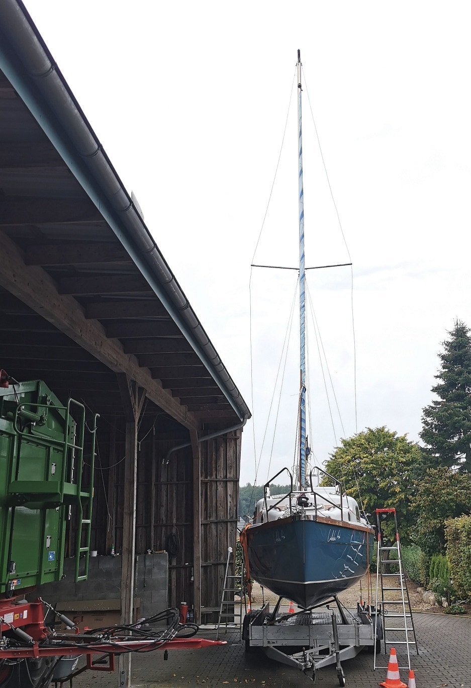 Zum stellen und legen des Mastes baue ich nebenbei einen sogenannten „Toten Mann“ um den Mast quasi ohne Hilfe sicher handhaben kann. Bilder hierzu folgen in Kürze.
