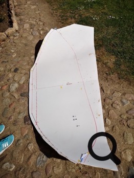 I already cut out the bi-diagonal glass fabric and used the created rear template for that. When cutting out with the sharp scissor, I leave about 8mm on the edge.