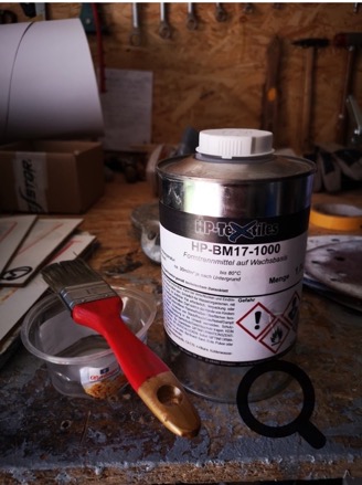 At first I applyed the wax-based mold release agent 4x with a brush. The waiting time between the coats is 30 to 40 minutes.