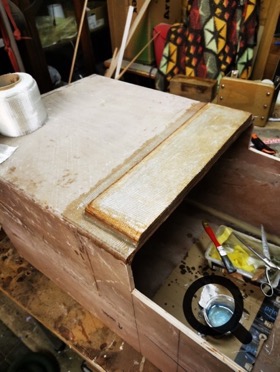 The additional wood board was glued on with thickened epoxy and then laminated with fiberglass.